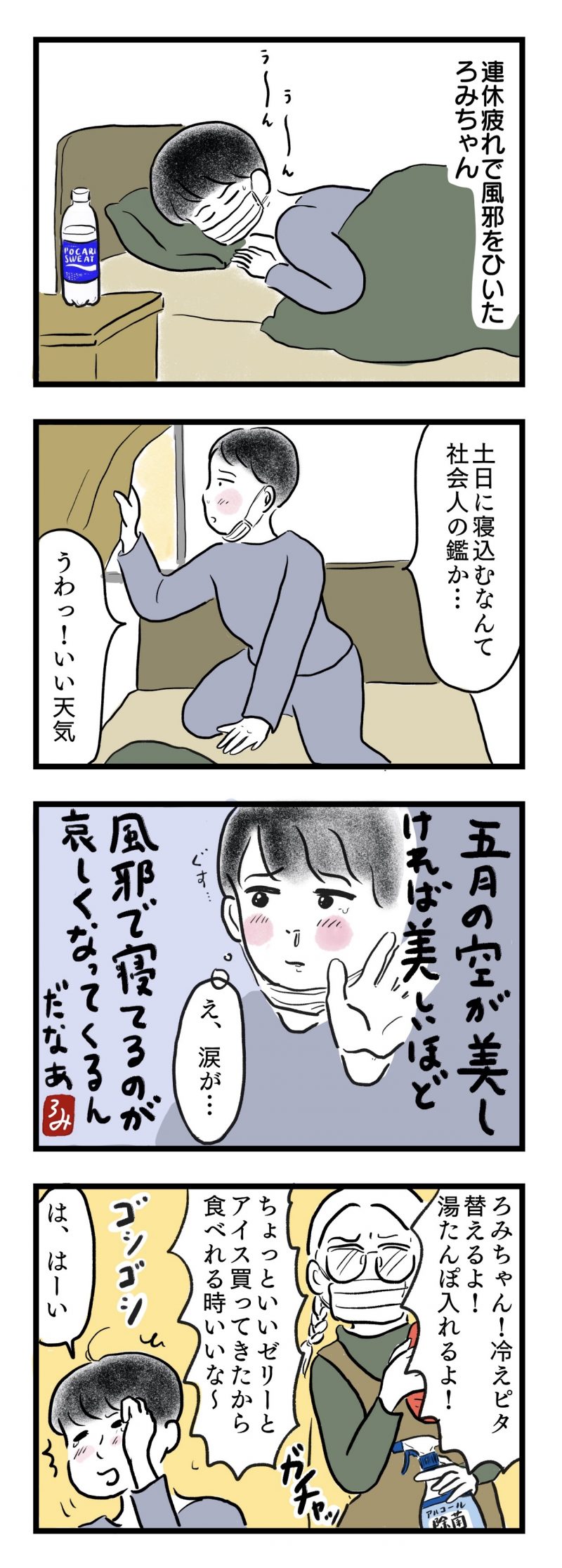 5月の連休で逆に疲れてしまったろみちゃんですが、窓から見た空が心に訴えてきて、思わず……。