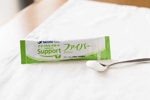 例えば、ネスレから発売されている『アイソカルサポートファイバー』なら、料理や飲料に1包を加えるだけで、食物繊維(グアーガム分解物)5.2gを摂取できます。