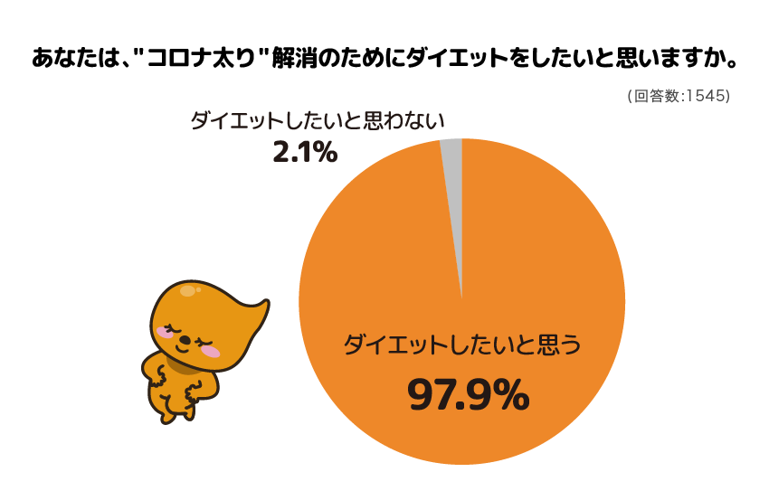 「”コロナ太り”を感じる」と回答した人のうち97.9%は、”コロナ太り”解消のために「ダイエットしたい」と回答しています。