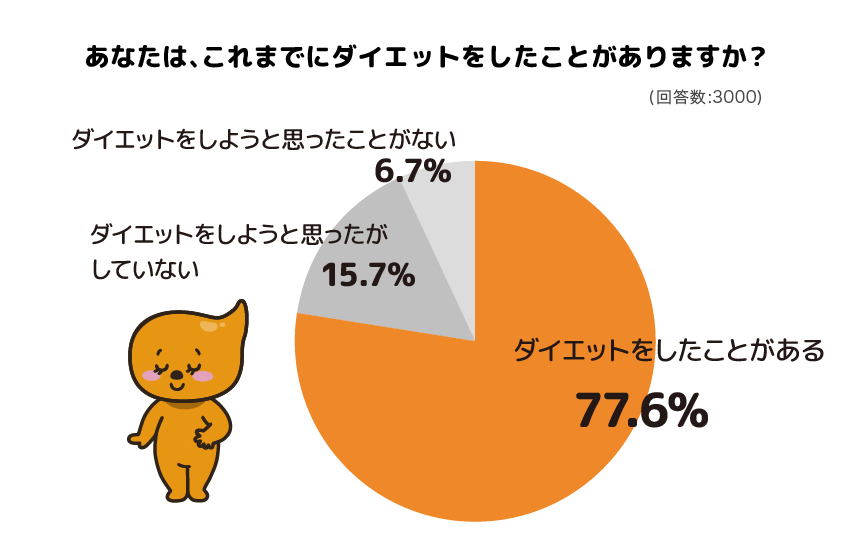 ウンログユーザーに対して、ダイエットの経験があるかどうかを聞いたところ、ダイエットをしたことが「ある」と答えた人は77.6%となりました。