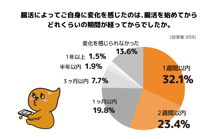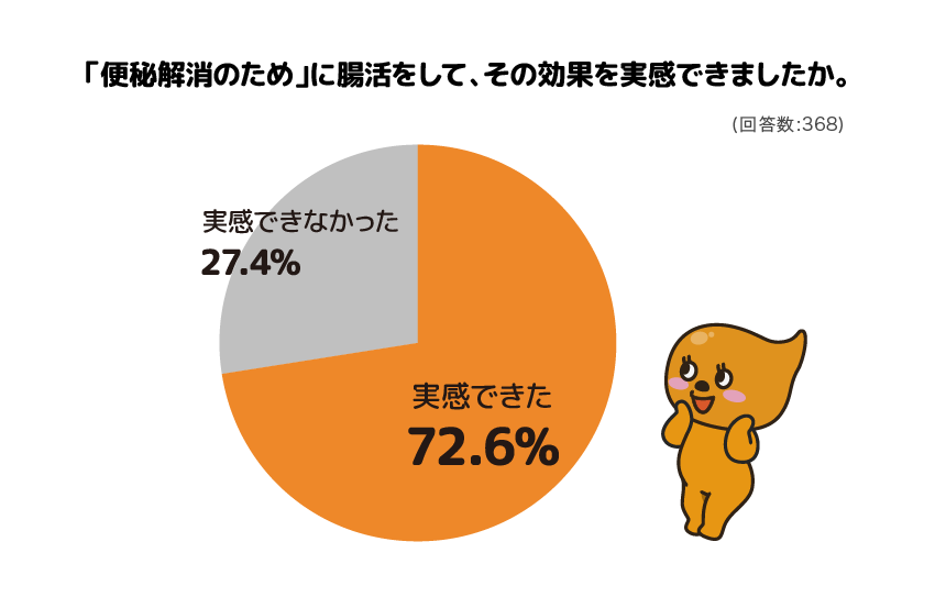 腸活を取り入れて2週間で55.5%が変化を実感!72.6%が便秘解消に成功した。