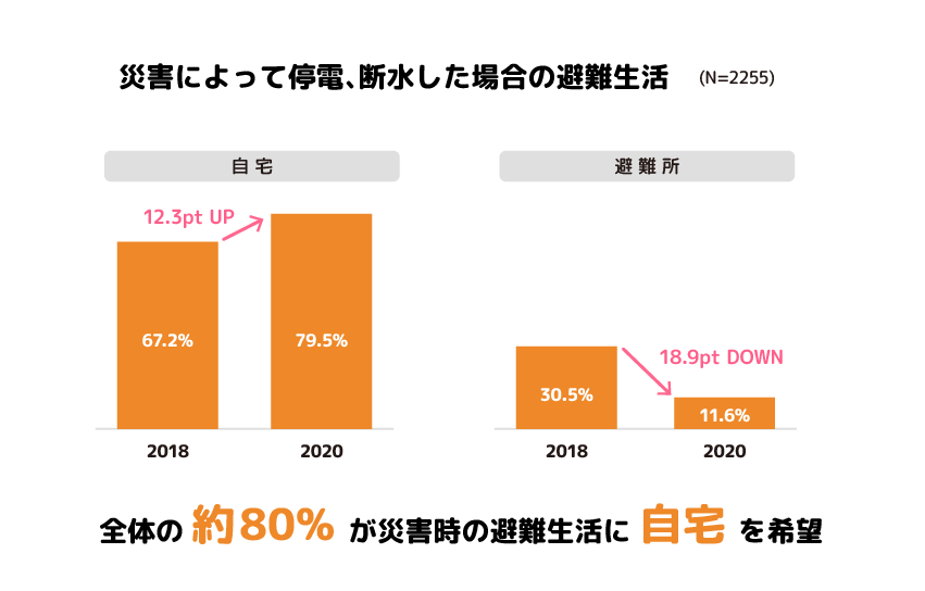 ①新型コロナウイルスの影響か?災害時に「自宅で避難したい」は約80%。