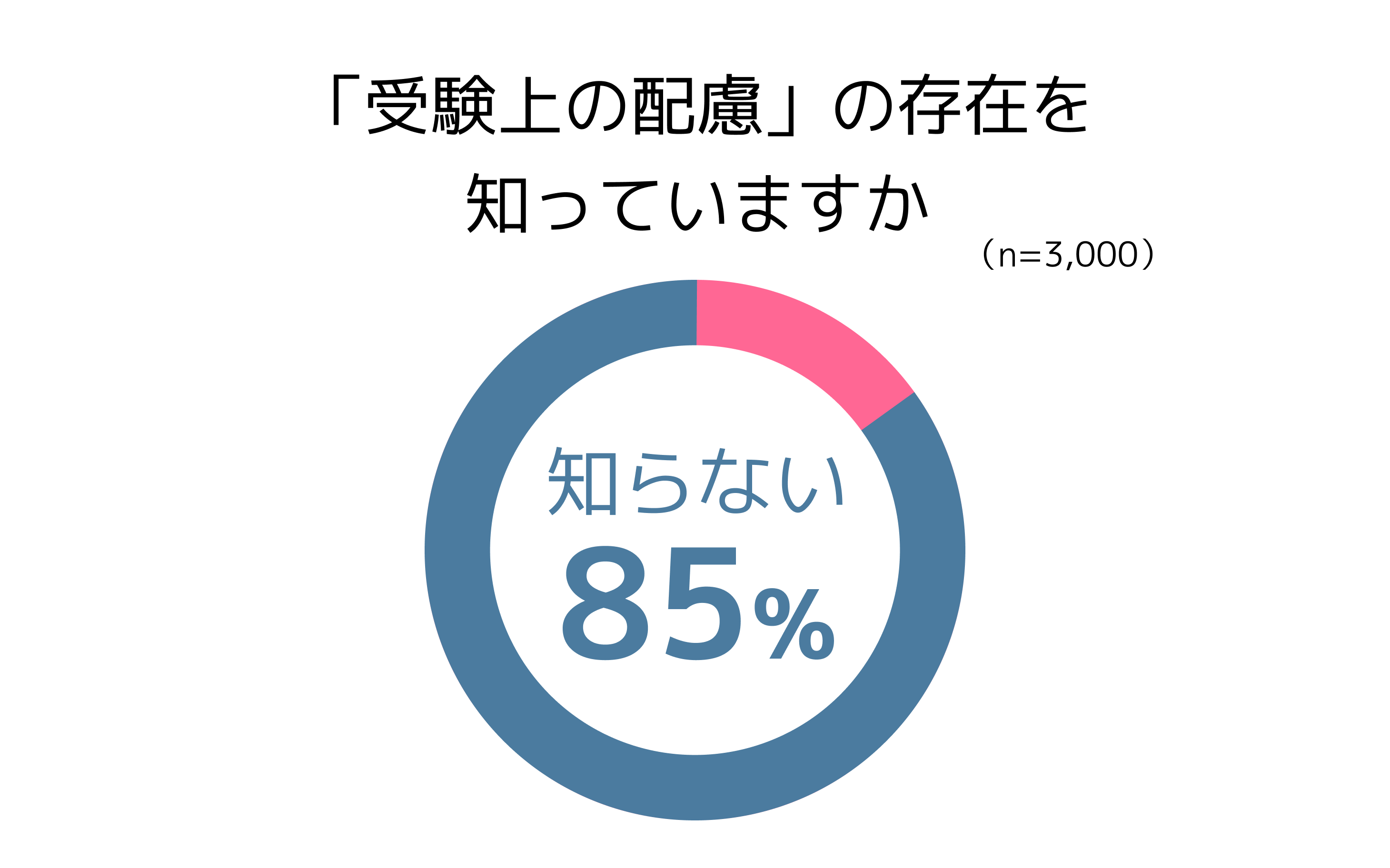 「受験上の配慮」について、その存在を知らないと回答したのは85%にのぼりました。「知っている」と回答した15%のうち、実際の利用者は1%未満でした。