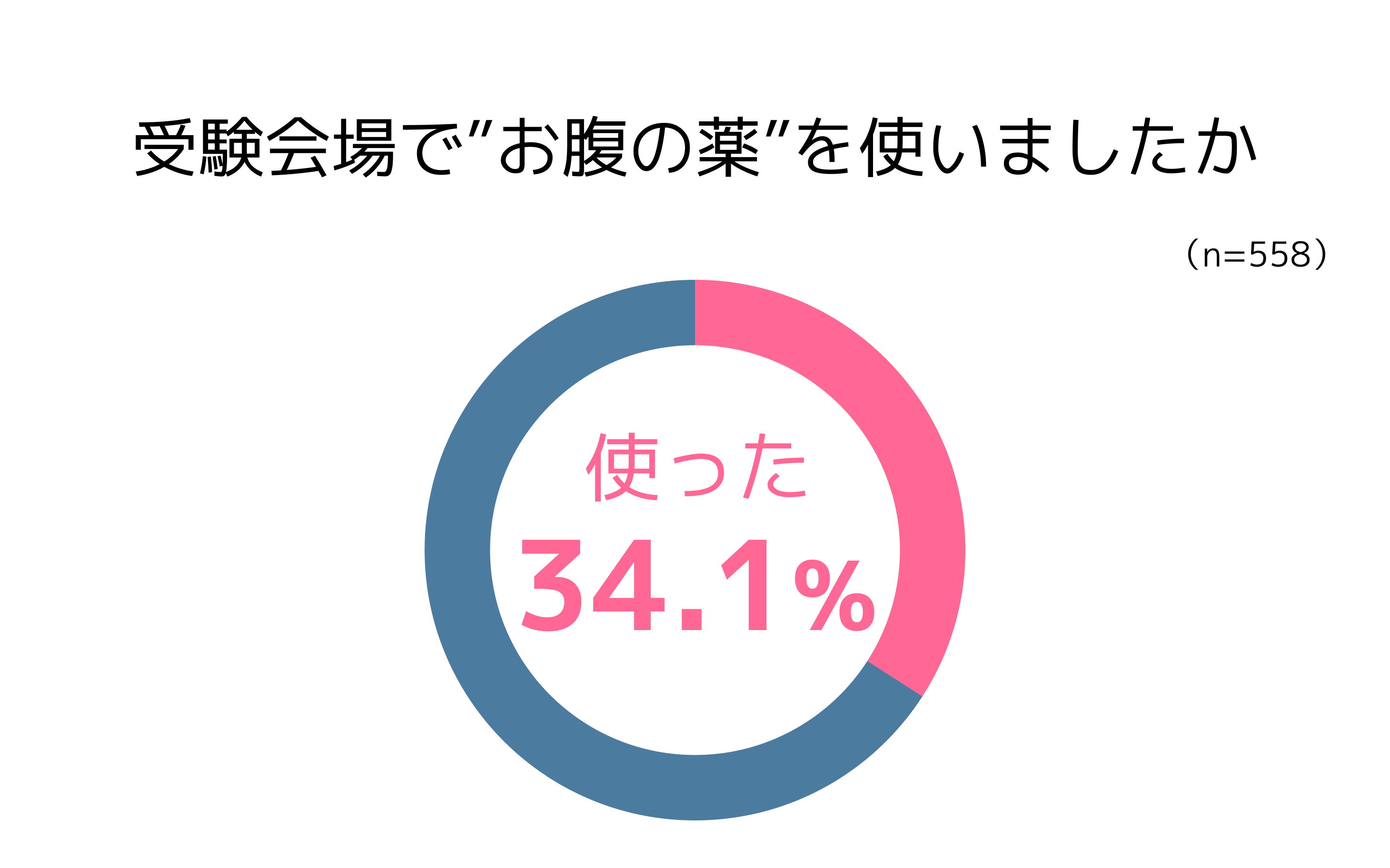 受験会場でお腹の薬を利用した人は34.1%。そのうちの約半数にのぼる50.1%が「下剤」を使用したと回答しました。