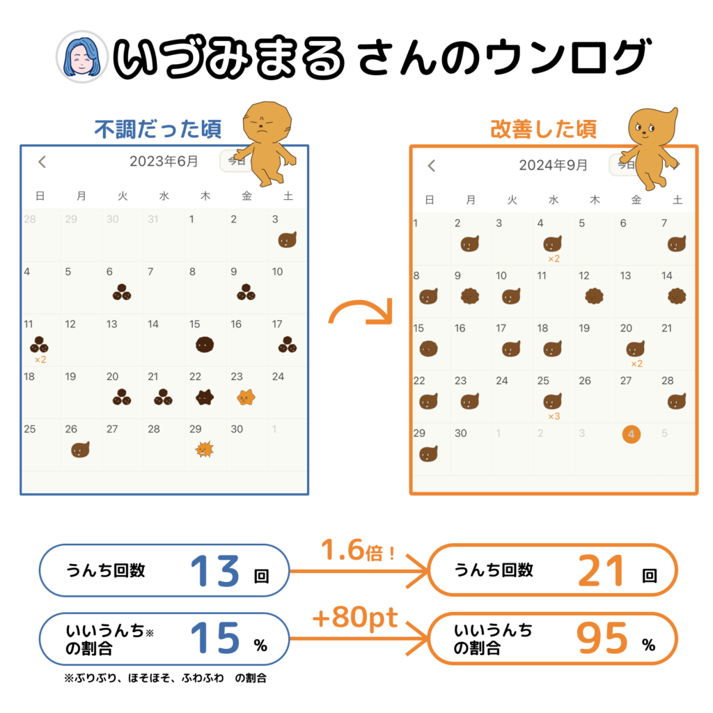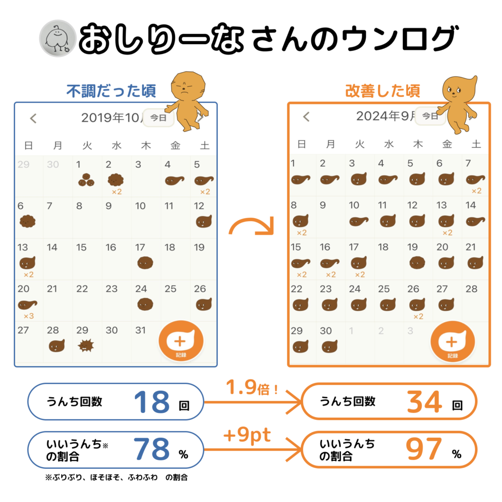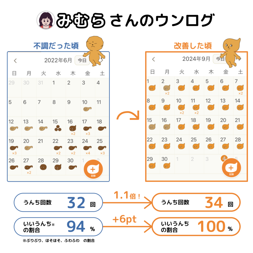 「不調だった頃」と「改善した頃」のウンログ画面を比較!