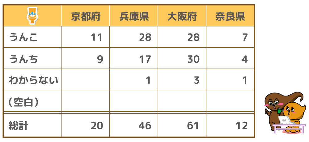 母数が少ないので誤差の範囲とも言えますが、関西圏は「うんこ」の呼び名が負けてなさそうです。