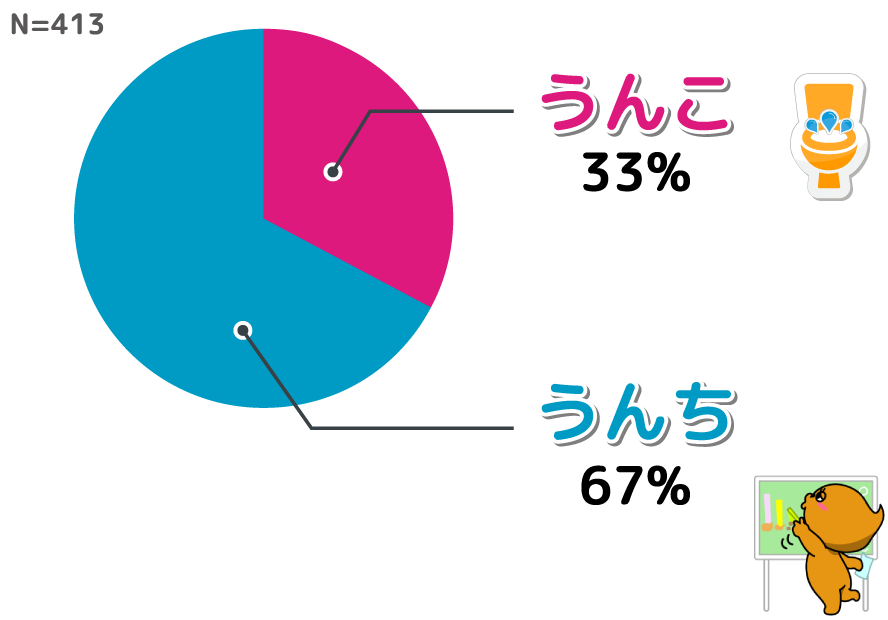 圧倒的な大差ではありませんが、「うんち」に軍配。