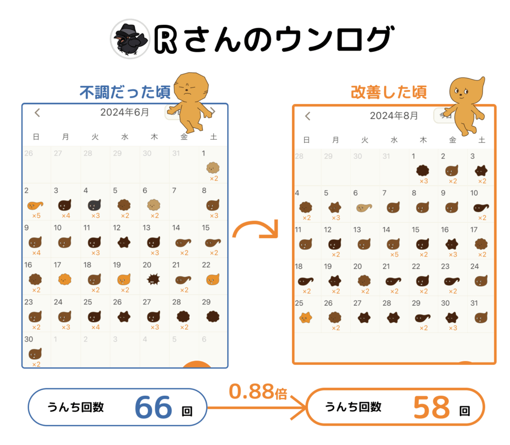 「不調だった頃」と「改善した頃」のウンログ画面を比較!