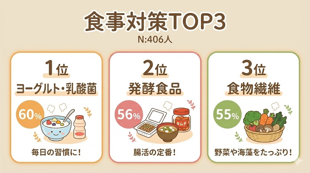 今回のアンケートから見えてきたのは、特別なことをするよりも「日常の中でできること」を続けている人ほど、おなかの調子が安定しているということ。
