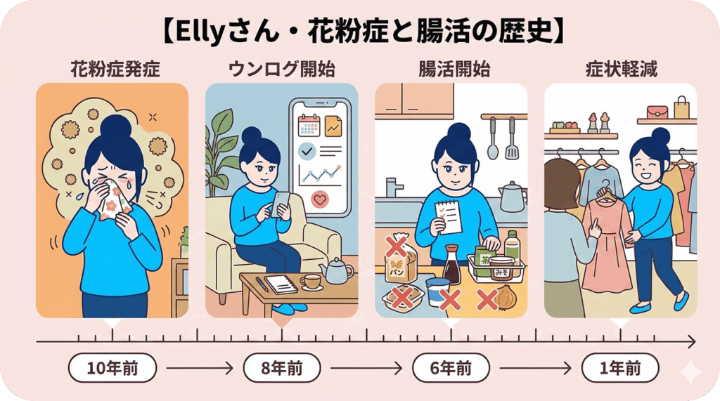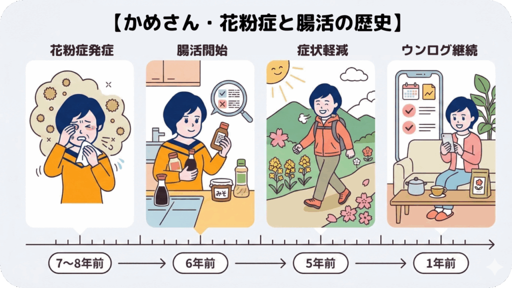 元々は、おなかの症状をやわらげるためにはじめたことでしたが、その結果、花粉症の症状が改善しました。