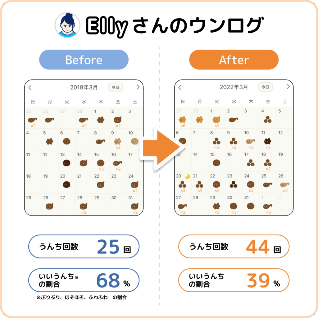 Ellyさんにも「不調だった頃(Before)」と「改善した頃(After)」のウンログ画面を見せてもらいました!
