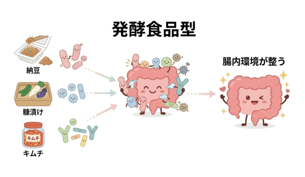 ③納豆や糠漬け、キムチなどの「発酵食品型」