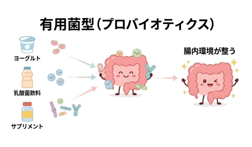 ②ヨーグルトや乳酸菌飲料などの「有用菌型(プロバイオティクス型)」