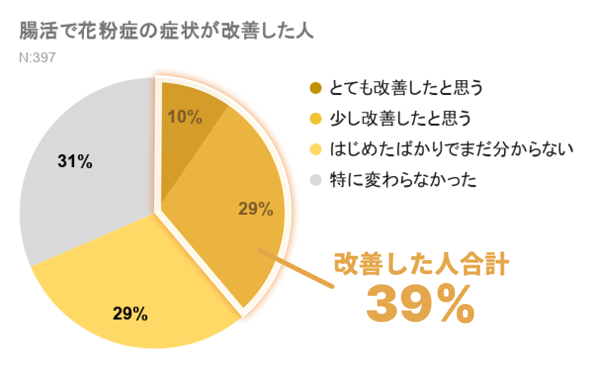 そこで今回、「腸活によって花粉症が改善した方」にアンケートを実施しました。