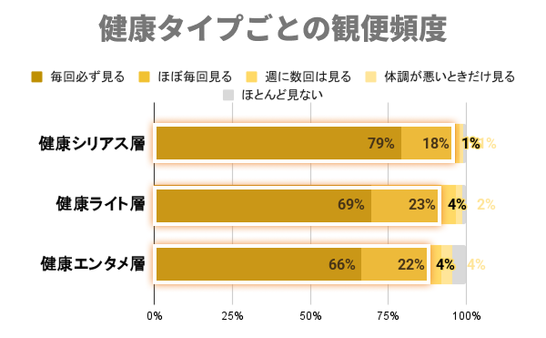 健康に向き合っている人ほど、観便を習慣にしている割合が高いという結果になりました。