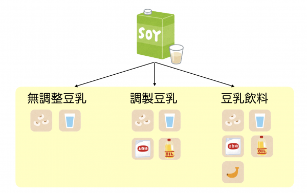 豆乳は、原材料や大豆固形分の割合によって大きく3種類に分けられます。